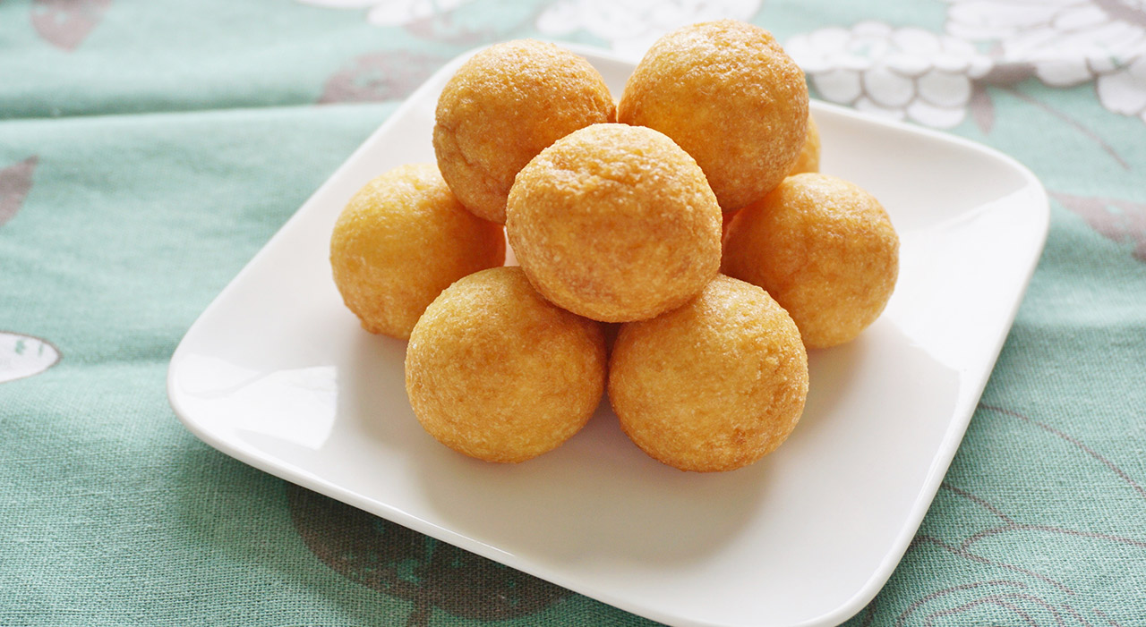 ① ボウルに卵を入れてほぐす。 ② アーモンドミルク、溶かした無塩バター、ミックス粉の順に加えてゴムヘラで混ぜ合わせる。 ③ 生地がまとまったら15回手でこねる。 ④ 10gづつ丸める。 ⑤ 170℃に熱した油で4分揚げる。