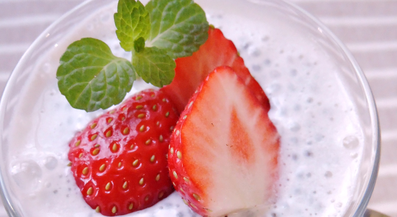① アーモンドミルクにチアシードを加えて、よく混ぜる。 ② 1晩おいてふやかす。 ③ 容器に入れる。 ④ お好みでメイプルなどを加える。