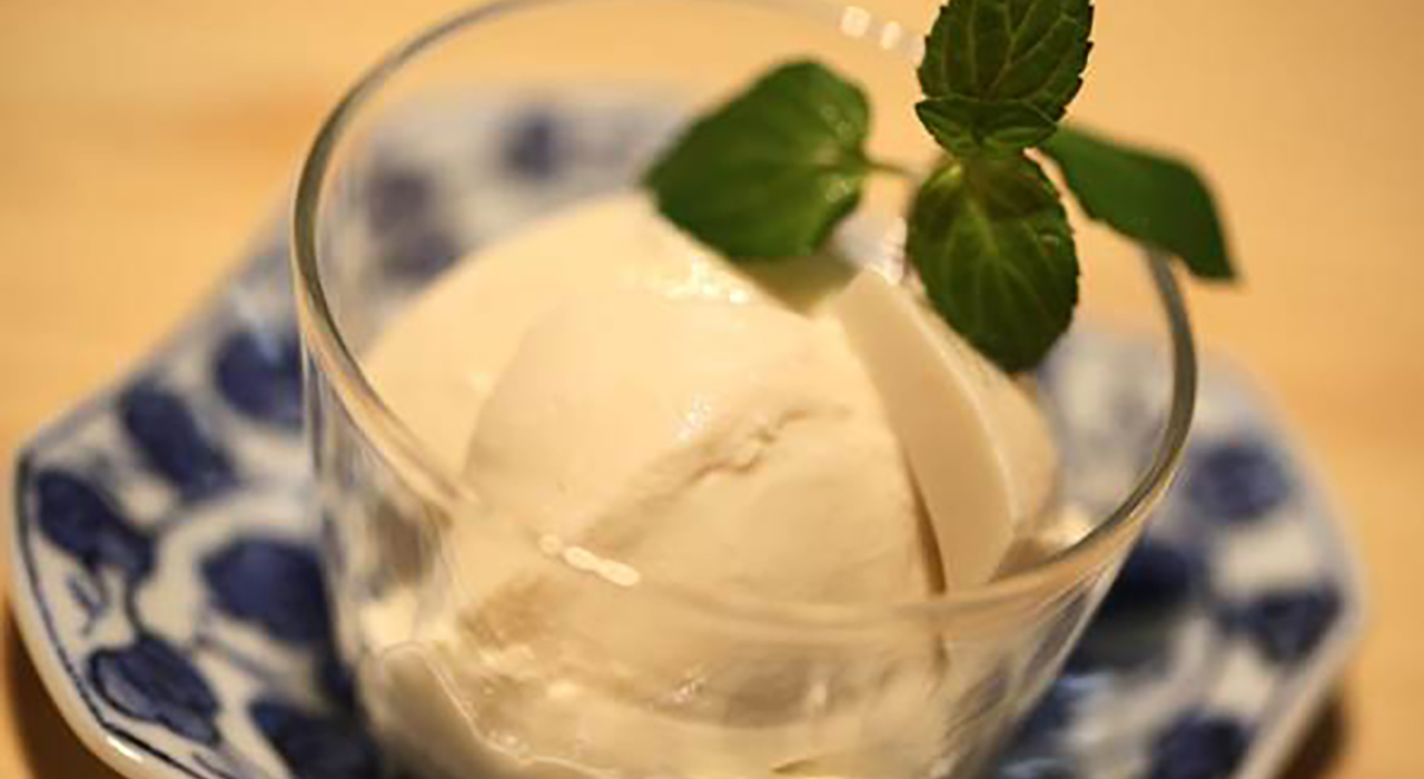 ① ル・カンテンウルトラとグラニュー糖を粉体混合する。 ② アーモンドミルクと生クリームを混合し、①を加える。 ③ 80℃まで加熱し、溶解する。 ④ メープルシロップを加える。 ⑤ 充填して冷却する。