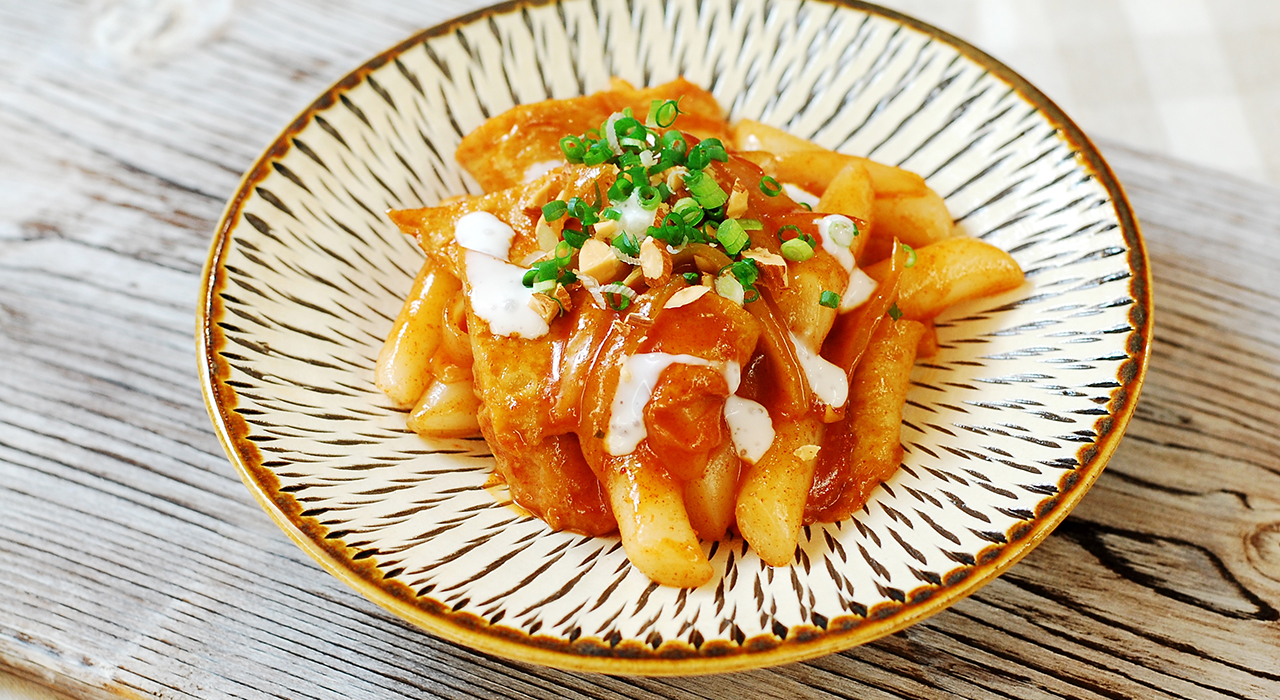 ① 鍋に【合わせ調味料】を入れ熱し、トッポギ、玉葱、韓国おでんを加え10分程煮込む。